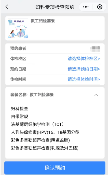 项目内容:妇科常规、白带常规、液基薄层细胞学检测(TCT)、HPV检测(16/18型)、乳腺彩超、盆腔彩超。