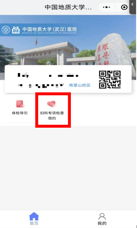 3、点击“首页”——“妇科专项检查预约”。